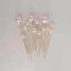 Die schimmernden Perlen-Nadeln bieten einen sicheren Halt für deine Frisur und sorgen dafür, dass dein Haar den ganzen Tag über perfekt sitzt. Sie sind relativ groß und schwer und eignen sich daher besonders für lange, feste und viele Haare. Egal, ob du dich für einen klassischen Chignon, einen romantischen Kranz oder eine verspielte Hochsteckfrisur entscheidest, unsere Haarnadeln sind das ideale Accessoire, um deinen Look zu vollenden.